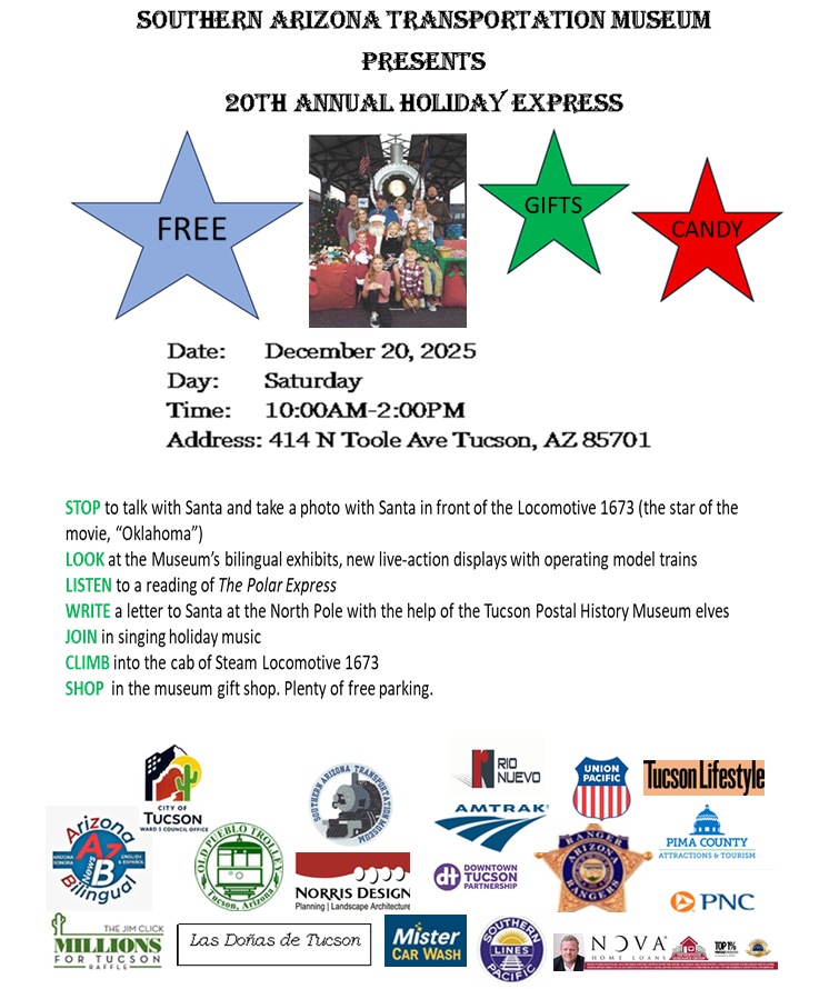 Our friends at MagicCars.com have shared the best kids ride-on train with the Tucson Historic Depot to help inspire the next generation of engineers and explorers via an amazing raffle here at the depot.